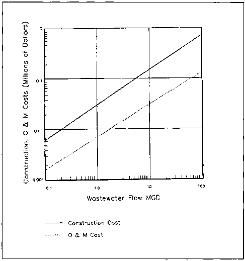 Cost estimates of wetland-based wastewater treatment systems are equally scarce. The cost of the totora treatment system in Peru is estimated at $65 000. Generalized construction, operation, and maintenance costs for wetland systems are shown in Figure 23. The costs shown in this figure were derived from wetland treatment systems at Vermontville and Houghton Lake in Michigan, U.S.A.