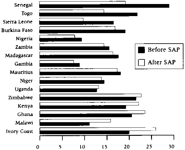 Figure 1: Educational Expenditure Before and After Structural Adjustment