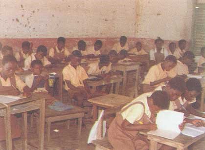 "The buildings range from the modem, airy, well-constructed Local Council Girls Middle School to others which are made of 'swish', sometimes with leaking roofs and overcrowded classrooms, with three children squeezed on a bench meant for two. Generally the standard is fair, for financial grants are conditional on adequate buildings. The personality and competence of the headmaster or headmistress are reflected in the state of the building and of the grounds, for all schools have available in the pupils a supply of free labour, and it usually requires efforts, organisation, and enthusiasm rather than funds to keep the school buildings and grounds in a pleasing state. Some schools, such as the Methodist Primary, have rather cramped accommodation with no space for recreation, but others are well laid out with ample room for fairly level sports fields and other recreational and agricultural facilities".Brokensha, D.