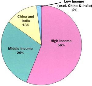 Data refer to emissions from industrial processesFIGURE 11 - Carbon Dioxide Emissions, by Income Group of Country, 1992Source: World Development Indicators 1997.