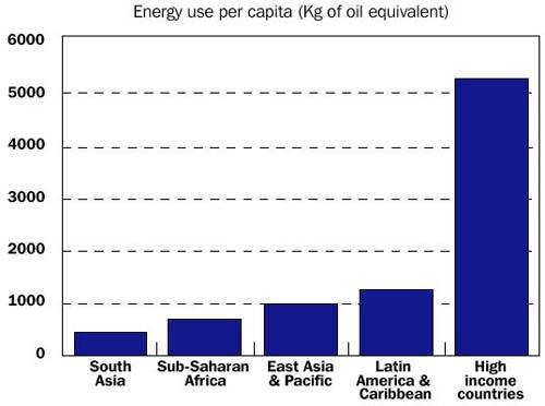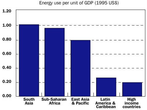 FIGURE 6.1 Energy efficiency tends to improve as income rises... ...but overall consumption is much higher in richer countries Source: World Bank, World Development Indicators 2000 |