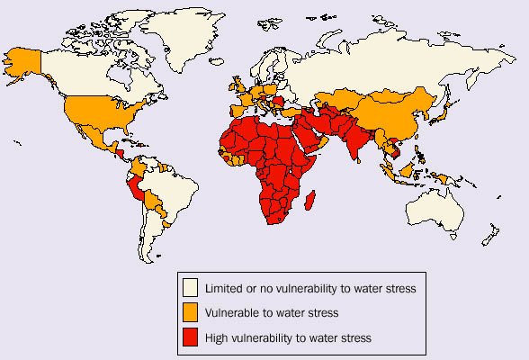 GLOBALISATION AND WATER RESOURCES17 17 For more detail of UK policy in this area see the DFID strategy paper on Addressing the Water Crisis. www.dfid.gov.uk.Freshwater is a limited and precious resource. With an increasing global population and the risks associated with climate change, the challenge of managing water resources grows. Many poor people do not have access to sufficient quantities for consumption and production. With climate change, the risks and uncertainties will be greater. Water is already a contested resource: in many regions of the world the lack of freshwater has reached crisis proportions and can be a cause of outright conflict. World map showing countries vulnerability to water stress projected for the year 2025 Based on data produced for the UN Commission on Sustainable Development (Raskin et al 1997) Water Futures: Assessment of long range patterns and problems Stockholm Environment Institute Increased awareness of these issues has prompted a greater focus on achieving environmental and financial sustainability, more sustainable access for the poor, and better water management. The key challenge is how to mobilise governments to share and provide water whilst ensuring that its management at a local level is effective and equitable. The UK Government supports closer regional and international