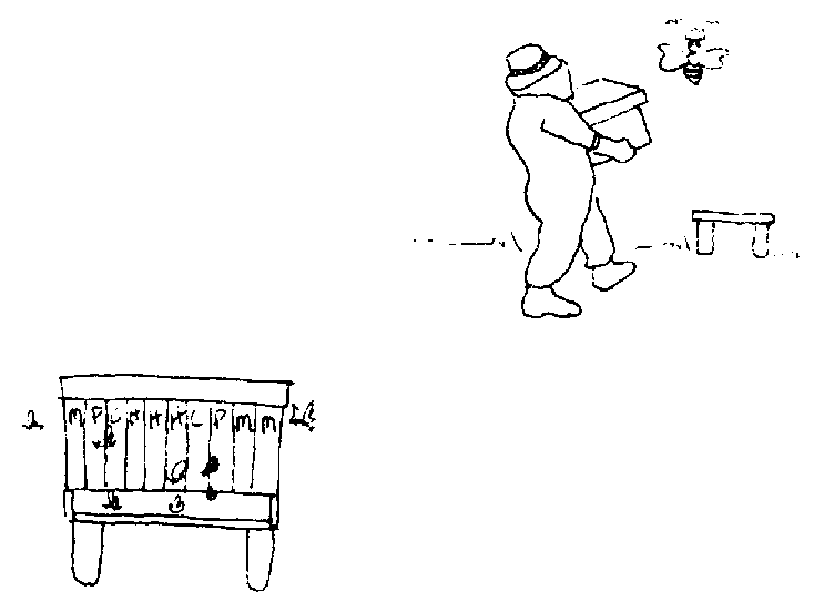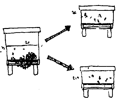 3. Poner el núcleo donde está ahora la colmena madre y trasladar la colmena madre a un nuevo lugar. Las obreras de la colmena madre retornarán al núcleo hasta que se hayan reorientado.