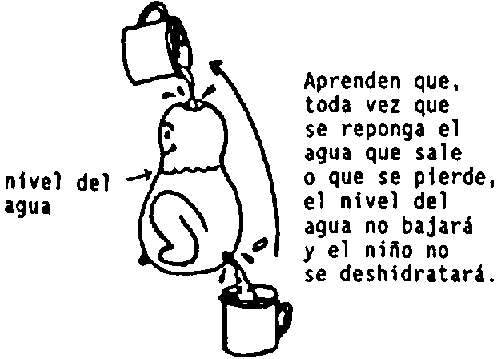 A continuación presentamos dos ejemplos de cómo presentar la idea de lo que es la rehidratación. Para otras ideas, consulte el manual Ayudando a que los Trabajadores Sanitarios Aprendan, Capitulo 24, páginas 17-22.