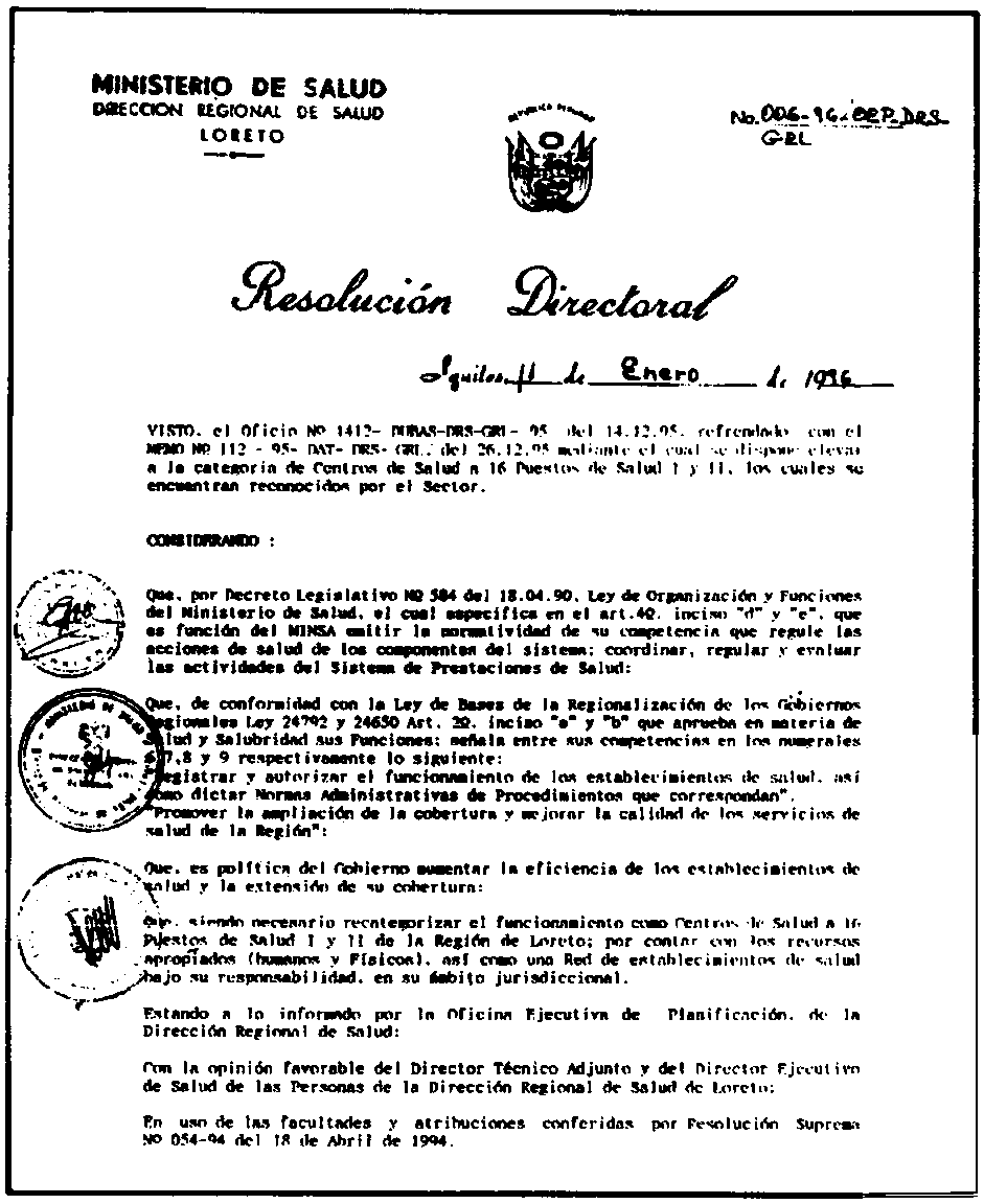 La Dirección Regional de Salud elevó al grado de Centros de Salud a varios establecimientos de Salud.