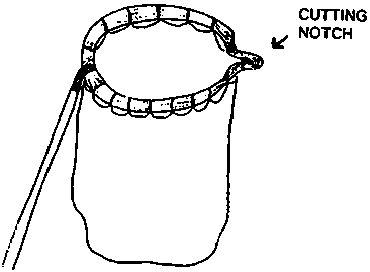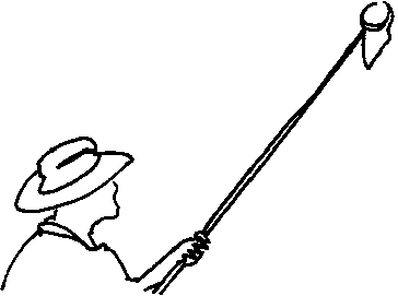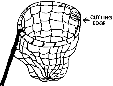 Picking poles and catching sacks can be made by hand or purchased from horticultural supply companies. The collection bags illustrated below were hand woven from strong cord or sewn from canvas. The hoop used as the basket rim and cutting edges can be fashioned from sheet metal, steel tubing or recycled scrap metal.