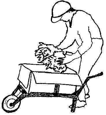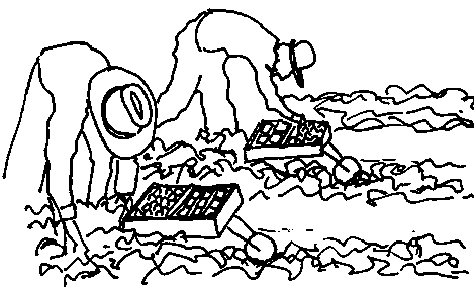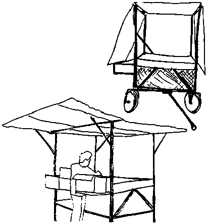 A simple aid for field packers is a movable cart with a rack for boxes and a roof to provide shade. This cart is designed to be pushed along the outer edge of the small field where harvest is taking place.