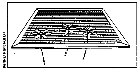 A simple electric dehydrator can be constructed using plywood, sheet metal a small fan, five household lightbulbs with porcelain mounting fixtures and some screening material. The drier shown below is 32 inches long by 21 inches wide and 30 inches high, and contains racks for five trays. The fan and the sheet metal lining the bottom compartment help conduct heat upward through the box.