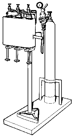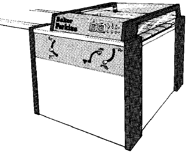 This is a two-headed bottle washing machine driven by a 0.19kW (0.25hp) single-phase motor. It is supplied with four nylon brushes (two are spare) for washing inside bottles. A large brush is also provided for cleaning exteriors. Inside and outside are washed simultaneously. There are two tanks; one for hot water and one for cold.