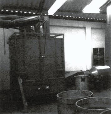 This machine comprises a drying bin, and a heating chamber powered by an electric fan which requires motors, 0.55kW (0.74hp) 1500rpm single-phase. The heaters require 8kW. Capacity: 1000kg per charge. Dimensions: 930 x 350 x 250cm.