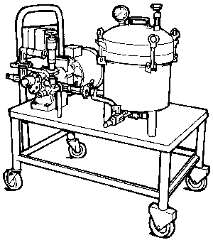 This prototype equipment has been tested successfully for pasteurizing fruit juice. It consists of a juice tank which feeds juice via a plastic pipe to a stainless steel coil. The coil is immersed in hot oil inside an insulated heater tank. The flow rate of juice is controlled by a valve to achieve the correct pasteurization conditions. It operates continuously at 30-120 litres per hour. Coil size: 15cm diameter made from 2.54cm diameter 18-gauge tube in five sections (bolted together and easily dismantled for cleaning).