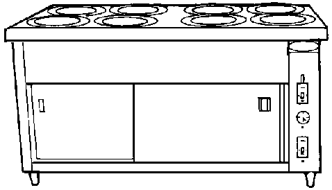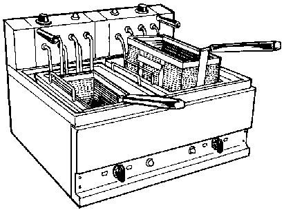 This cooks food under pressure of 103 kPa (15psi). It has a vapour valve, steam trap, a filter and a security valve. Capacity: 91 litres.