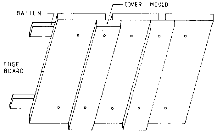 The concrete can then be mixed and placed. Regardless of the mix chooser, the concrete should be kept as stiff as possible and the size of the coarse aggregate should not exceed a quarter of the thickness of the slab. The bays are' concreted alternately as shown in Figure 5.33. When the first set of bays have hardened the timber screeds are carefully removed and the remaining bays can be cast.