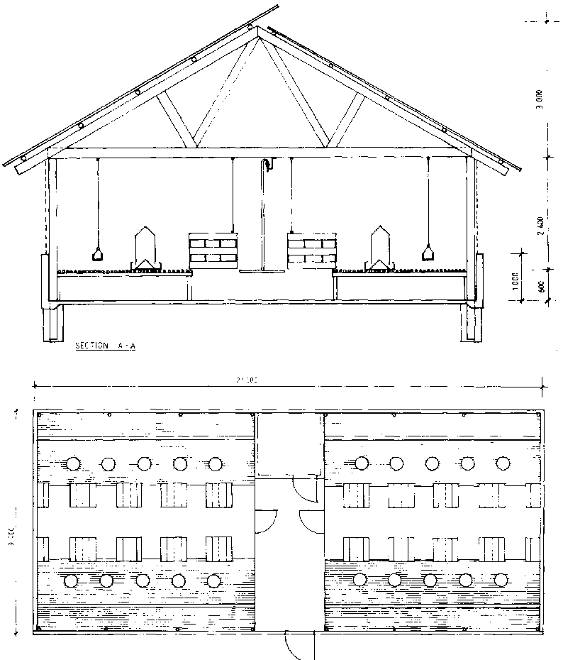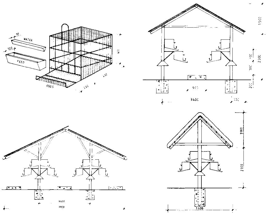 Figure 10.38 Poultry shelter for 50 layers.