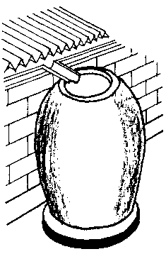 Large cement jar is tank is a large bag with framework made of cloth or sacks and stuffed with sawdust, sand or rice hulls. Mortar is then plastered on to the bag, chicken wire and barbed wire are tied on to the plaster and another layer of plaster applied. The bag is removed from the inside of the jar after 24 hours, and plaster is applied to the inside to make it waterproof. The bag can be used for many water jars making the cost per tank minimal. A 1:3 portland cement to sand mortar is essential. The same size restrictions apply as for the granary basket tank. In both this tank and the granary basket tank the curved sides contribute to the strength and life of the tank. A cover is desirable.