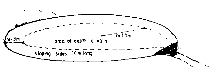 V2 = volume of sloping edges of pond, m³