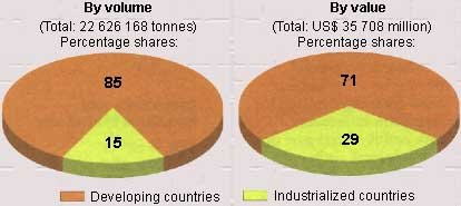 The industry is overwhelmingly concentrated in the developing world, which accounts for 85 percent of output by volume and 71 percent by value. Exports of high-value species such as shrimp, prawns and salmon earn much-needed foreign currency for these countries. Fish farming may increasingly be the only way for some poor communities, who rely on fish and shellfish for the bulk of their protein intake, to maintain a healthy diet.
