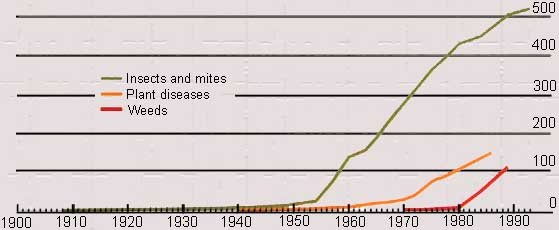 | Pests threaten crops, livestock and humans. At least 520 insects and mites, 150 plant diseases and 113 weeds have become resistant to pesticides meant to control them. |