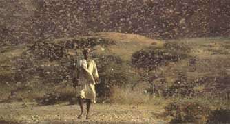 | Severe locust plagues in 1987-89 were mainly fought with chemical pesticides. Since then, environmental concerns have necessitated the development of alternative strategies. |