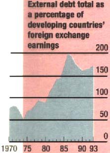 | Many developing countries are so indebted that their total annual repayments outstrip foreign exchange earnings up to 30 times over. |