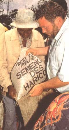 | Farmers in Rwanda normally keep seed from one harvest to plant in the following season. Civil war disrupted this routine and by autumn 1994 some 850 000 families needed seed. FAO coordinated a US$ 18.4 million programme that distributed bean, maize and other seed to help restore Rwandan agriculture. |