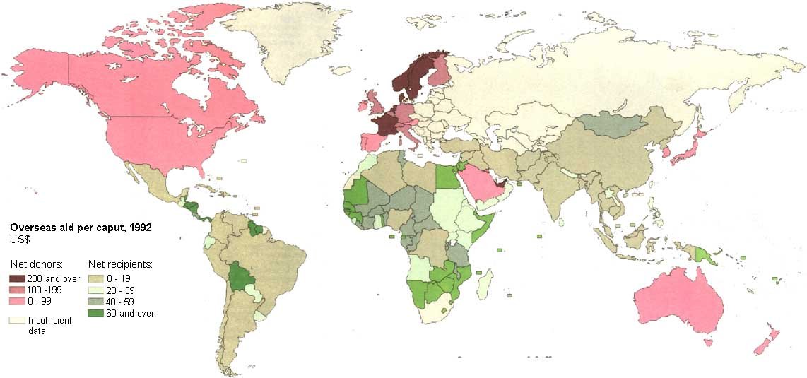 Overseas aid per caput, 1992