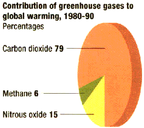 Contribution of greenhouse gases to global warming, 1980-90