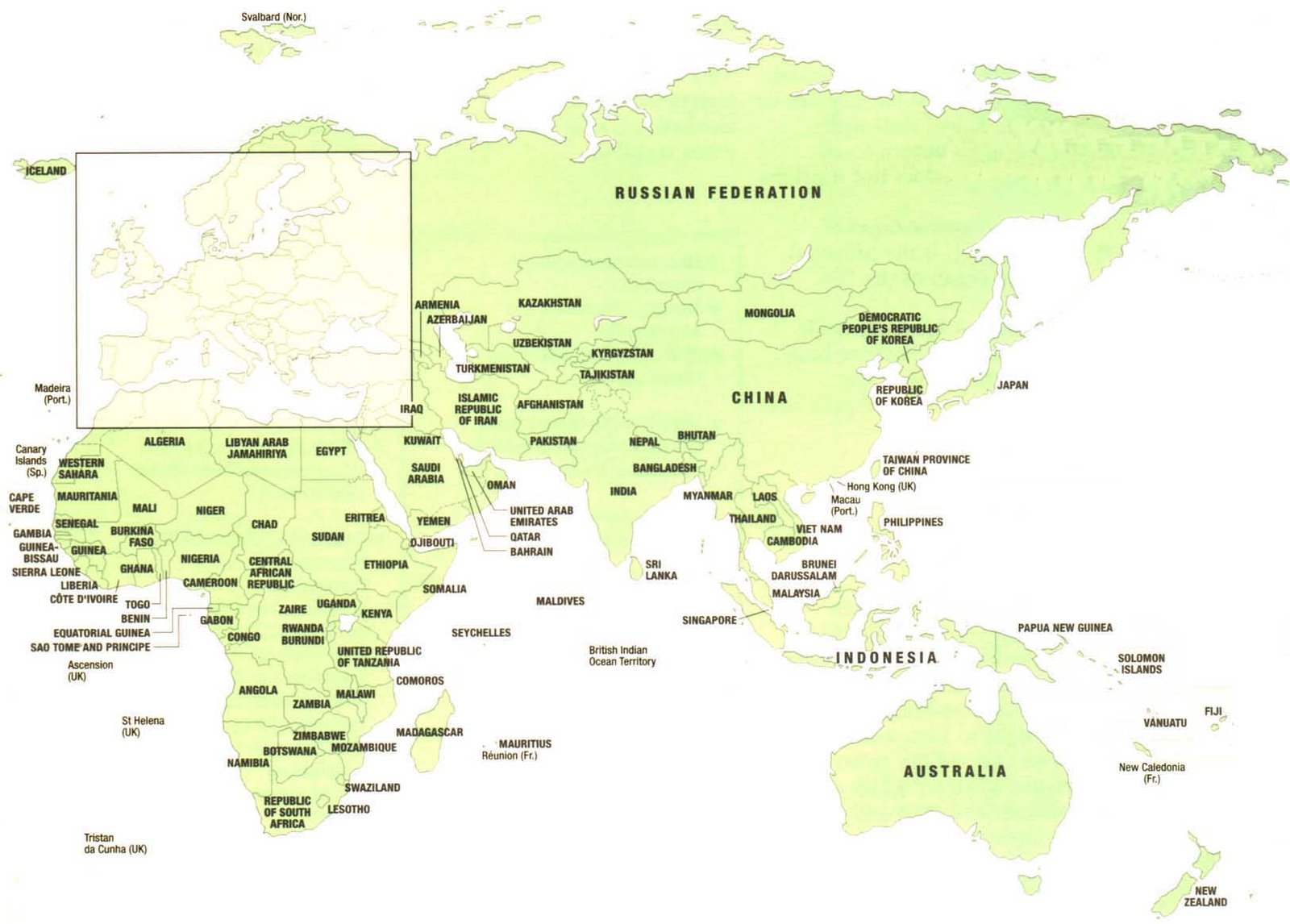 This map is for identifying countries only. The designations employed do not imply the expression of any opinion whatsoever on the part of the Food and Agriculture Organization of the United Nations concerning the legal status of any country, territory, city or area, or of its authorities, or concerning the delimitation of its frontiers or boundaries.