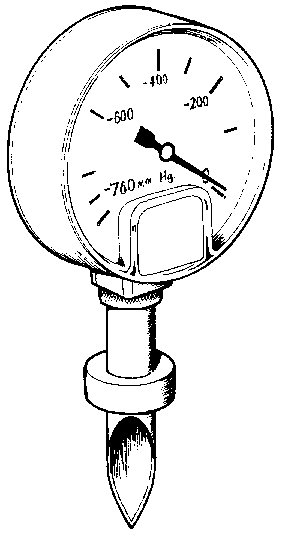 The partial vacuum in hot-filled glass jars may be measured using a Bourdon tube vacuum gauge (Figure 41: A vacuum gauge for measuring headspace vacuum). The gauge is fitted with a sharp needle, surrounded by a rubber seal. The needle is pushed through the lid of the container and the moistened rubber seal prevents air from entering. The partial vacuum may then be read directly from the gauge as 'mm of mercury' or 'minus kPa'. As the product is not saleable after this test, it is usually only applied to a small sample or when a problem arises.