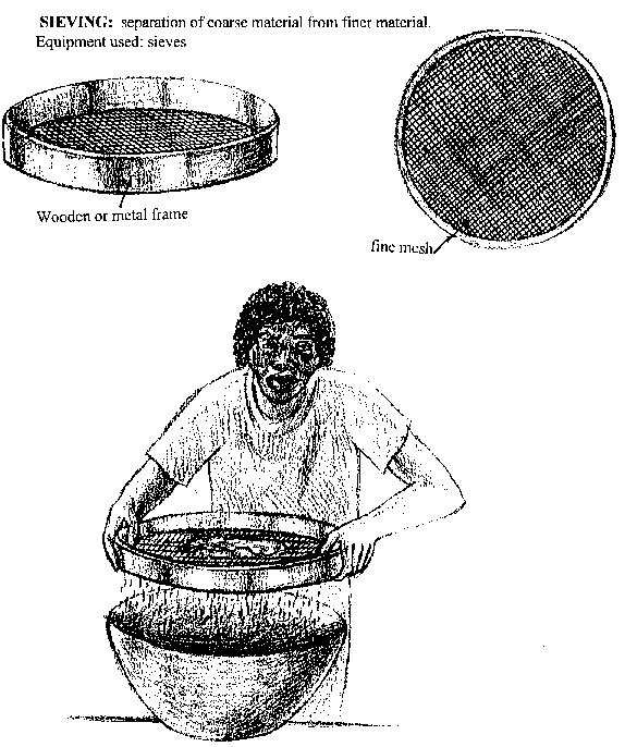 Sieving: separation of coarse material from finer material.
