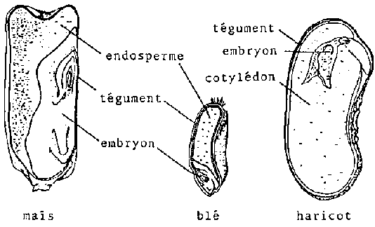 Chez les légumineuses, qui sont dépourvues d'endosperme, ce sont les cotylédons, épais et pulpeux, qui assurent la fonction de tissus nourriciers.
