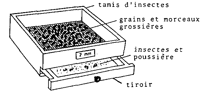 Certains ravageurs, tels que Sitotroga cerealella ou Sitophilus spp., se développent a l'intérieur du grain et échappent ainsi aisément aux contrôles. Pour mettre en évidence une infestation occulte, il faut procéder à une épreuve de flottage: