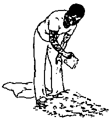 Figura 26 Misturar com cuidado o insecticida com os cereais com a ajuda de uma pá