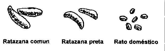 As características distintivas das espécies mais importantes de roedores são indicadas no quadro e na ilustração a seguir.