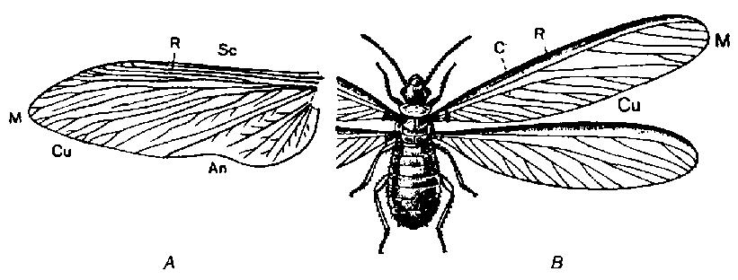 - Ailes antérieures avec une seule nervure récurrente (fig. 35 B). Segments abdominaux 3 et 4* en général plus ou moins soudés ensemble et, de ce fait, non mobiles l'un par rapport à l'autre. ............... Braconides (Braconidae)