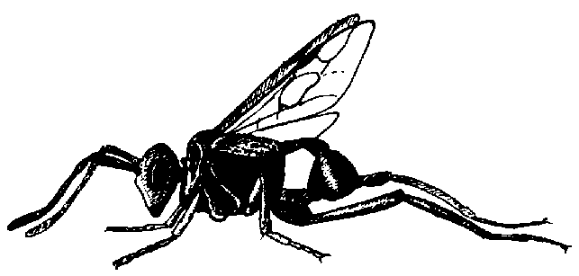 - Aux pattes postérieures, le trochanter est formé d'un seul article (fig. 33, Aculeata). Insectes de taille moyenne à grande, avec de nombreuses formes aptères. Les espèces avec nervation réduite des ailes possèdent un champ anal à l'aile postérieure (fig. 40 G) ...............Porte - aiguillon (Aculeata)