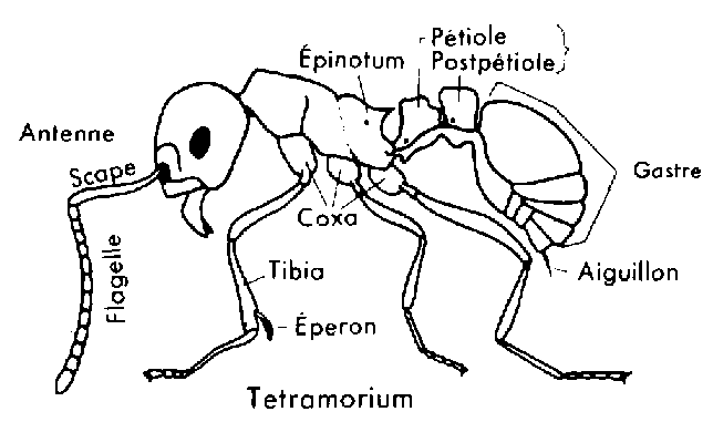 Fig. 38. Schéma de l'organisation d'une fourmi de la famille des Myrmicides (d'après GOESSWALD).