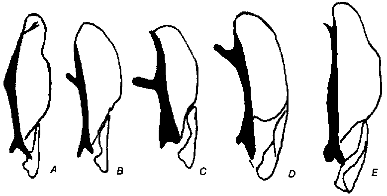 - La tache brune en avant de l'orifice anal est en forme de cintre (fig. 79 B. C)