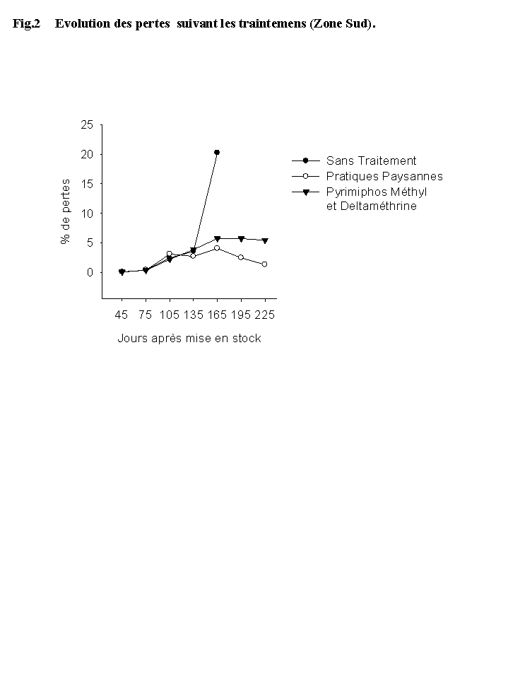| Fig. 2 | Evolution des pertes suivant les traitements (Zone Sud). |