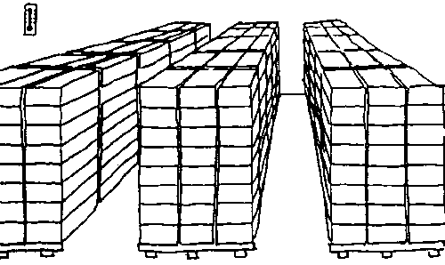 Il est important de laisser assez d'espace entre les piles de boîtes à l'intérieur du local réfrigéré pour que le produit refroidisse plus vite. Les piles doivent être étroites, d'environ une palette de largeur. L'air circulant à travers la pièce passe sur les surfaces par tout espace ouvert, de sorte que le refroidissement de l'extérieur au centre des piles se fait surtout par conduction. (voir Mitchell dans Kader, 1992 pour de plus amples informations).