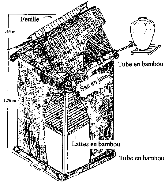 Source: Redulla, C.A. et al. 1984. Keeping perishables without refrigeration: use of a drip cooler. (Garder les denrées périssables sans réfrigération: emploi d'un refroidisseur goutte à goutte) Appropriate Postharvest Technology 1(2): 13-15.