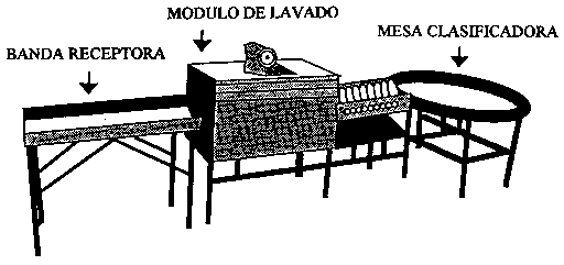 Algunos equipos a pequeña escala para el acondicionamiento de la cosecha se pueden adguirir con varios fabricantes y distribuidores. La siguiente ilustración reproduce una línea de empaque sencilla que incluye una banda receptora, un módulo para el lavado y una mesa clasificadora.