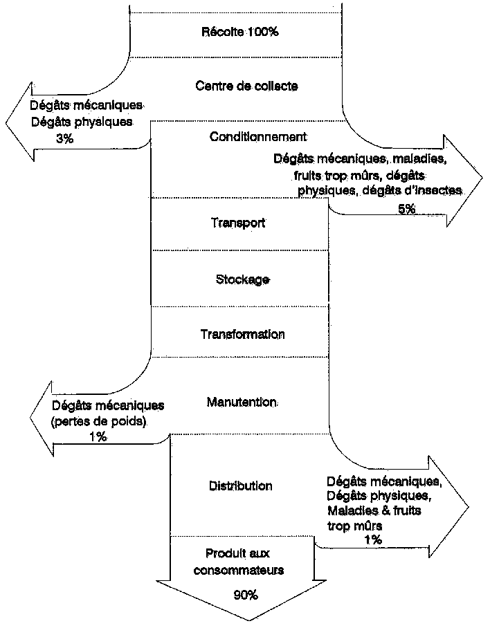 Une filière idéale permet au produit de passer de la ferme au consommateur n'ayant subi que des pertes minimales de qualité ou de quantité avant d'arriver à sa destination finale, et de se vendre à un prix que le consommateur veut bien payer. Les pertes qui ont lieu dans la filière sont des indications de défauts dans le système. Dans bien des cas, le coût de réduire une perte - e.g. en ayant recours à des chambres froides ou un récipient amélioré - s'avoue supérieur à la valeur du produit économisé en recourant à l'innovation.