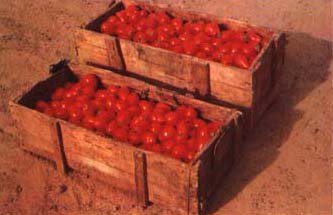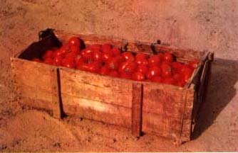 7. Regardons les cageots, ils ne sont pas complètement remplis. Aussi, quand nous les poserons l'un sur l'autre, les tomates d'en bas ne seront pas écrasées. Souvenons-nous qu'avec des tomates abîmées, on ne peut pas faire de bonnes conserves.