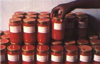 39. Que fais-tu Aminata? Tu trempes ton doigt dans le bocal pour savoir si c'est bon? Bien sûr que c'est bon! Mais si on dévisse le couvercle une seule fois, les tomates ne vont plus se conserver. Quand on a dévissé le couvercle, il faut utiliser les tomates tout de suite, sans attendre demain.