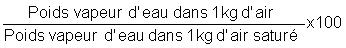 L'humidité relative de l'air, exprimée en pourcentage, est définie comme le rapport entre le poids de vapeur d'eau contenue dans 1 kg d'air et le poids de vapeur d'eau contenu dans 1 kg d'air saturé, à une température donnée: