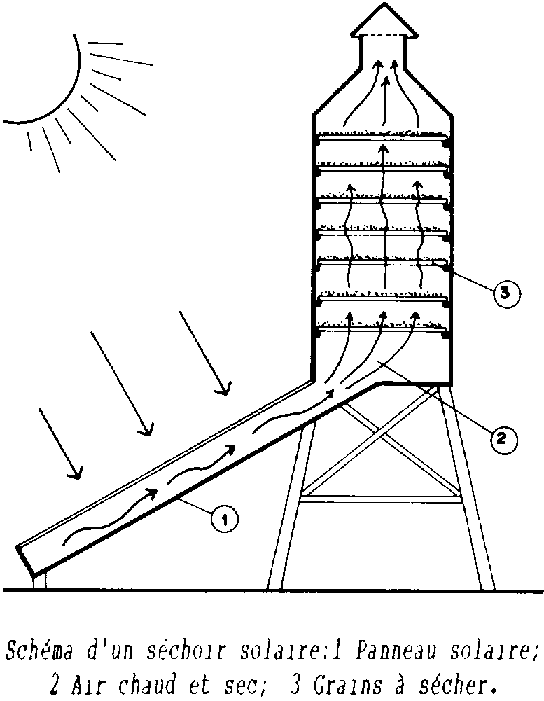 Pour trouver une solution de compromis pouvant satisfaire les besoins de petites communautés rurales, surtout dans les régions tropicales humides, l'on a entrepris au début des années Soixante-dix une série d'expériences visant aussi bien à l'amélioration des méthodes traditionnelles de séchage naturel, qu'au contrôle de la validité de solutions technologiques qui privilégient le soleil comme source d'énergie alternative.