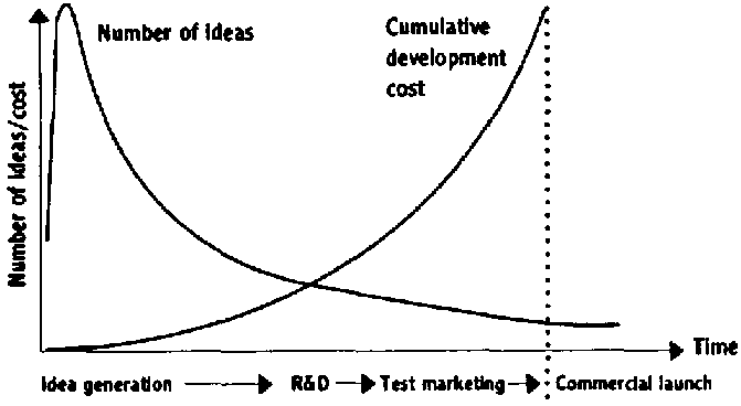 Large consumer goods manufacturers normally start NPD with a range of new ideas but end up with only a few successful product launches. A process is required to 'weed out' the least promising ideas at the early stages, before heavy expenditure is incurred on pilot plants, advertising, test-marketing etc. Figure 2 shows how the process can be approached by a research institute seeking to stimulate the introduction of new products in the private sector.