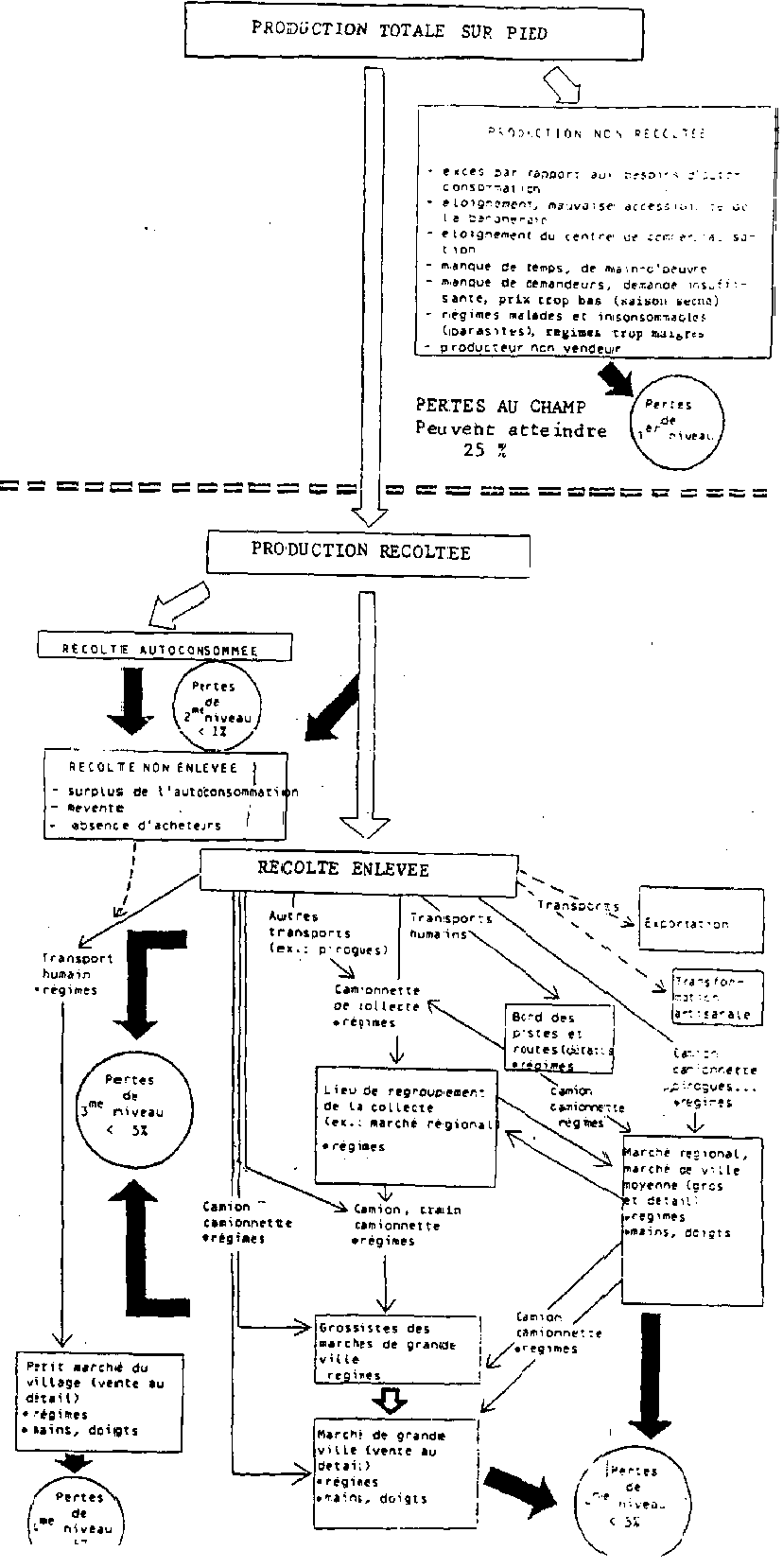 Les pertes physiques sont faibles auras la récolte, à tous les niveaux, globalement elles ne dépasseraient pas 5%; le taux est pratiquement nul en ville, pendant la saison de faible production car: