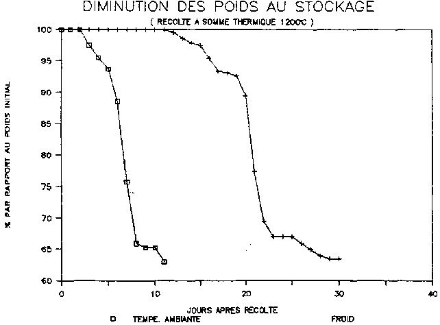 Figure 12: b) et pertes de poids au cours du stockage